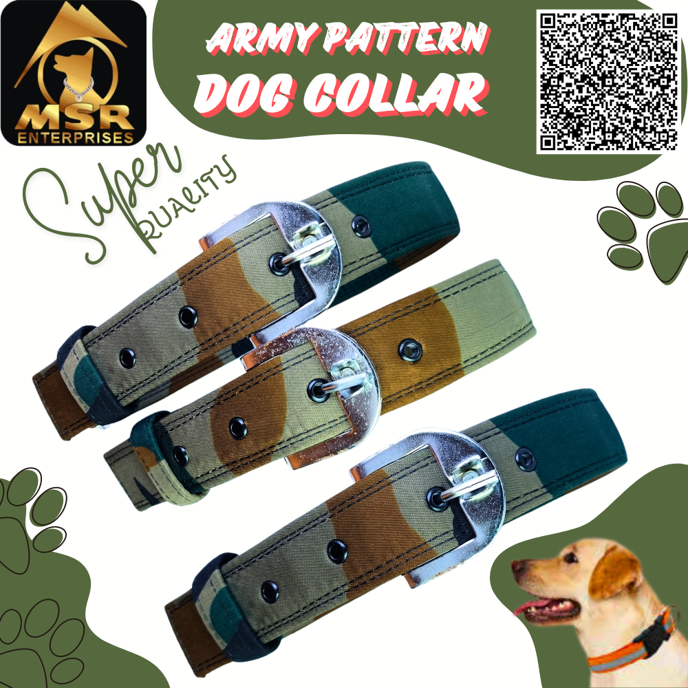 Add a touch of military-inspired style to your dogs look with our Army Pattern Dog Collar. Made with high-quality materials, this durable collar is perfect for everyday wear. The army color and pattern give it a unique and rugged look that will make your dog stand out. Available in different sizes, you can find the perfect fit for your furry friend. Whether youre taking your dog for a walk around the neighborhood or on an outdoor adventure, this collar is the perfect choice for any dog owner who wants their pet to look stylish and feel comfortable.