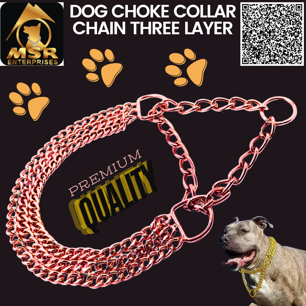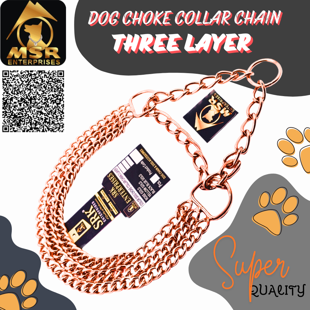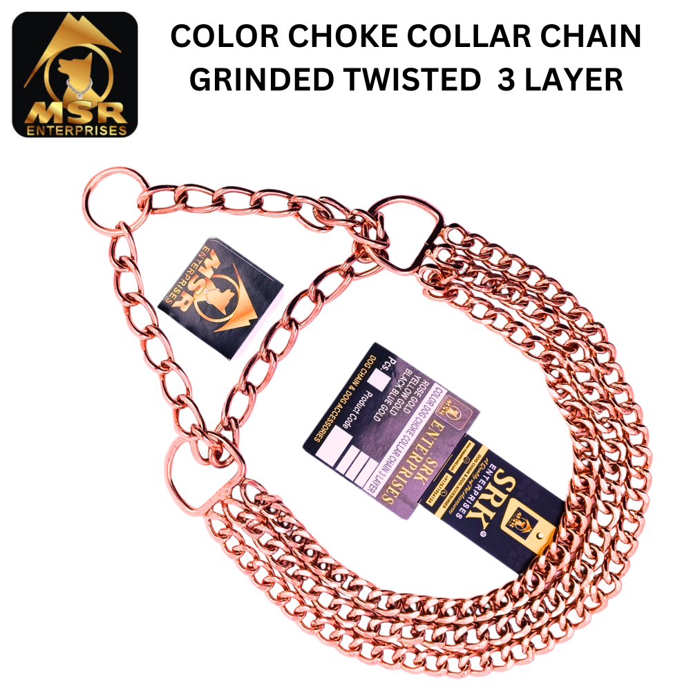 Elevate your dogïs style and control with the Dog Color Choke Collar Chain 3 Layer with Rose Gold Plating by SRK Enterprises. Order now and give your pet the best in quality and elegance!