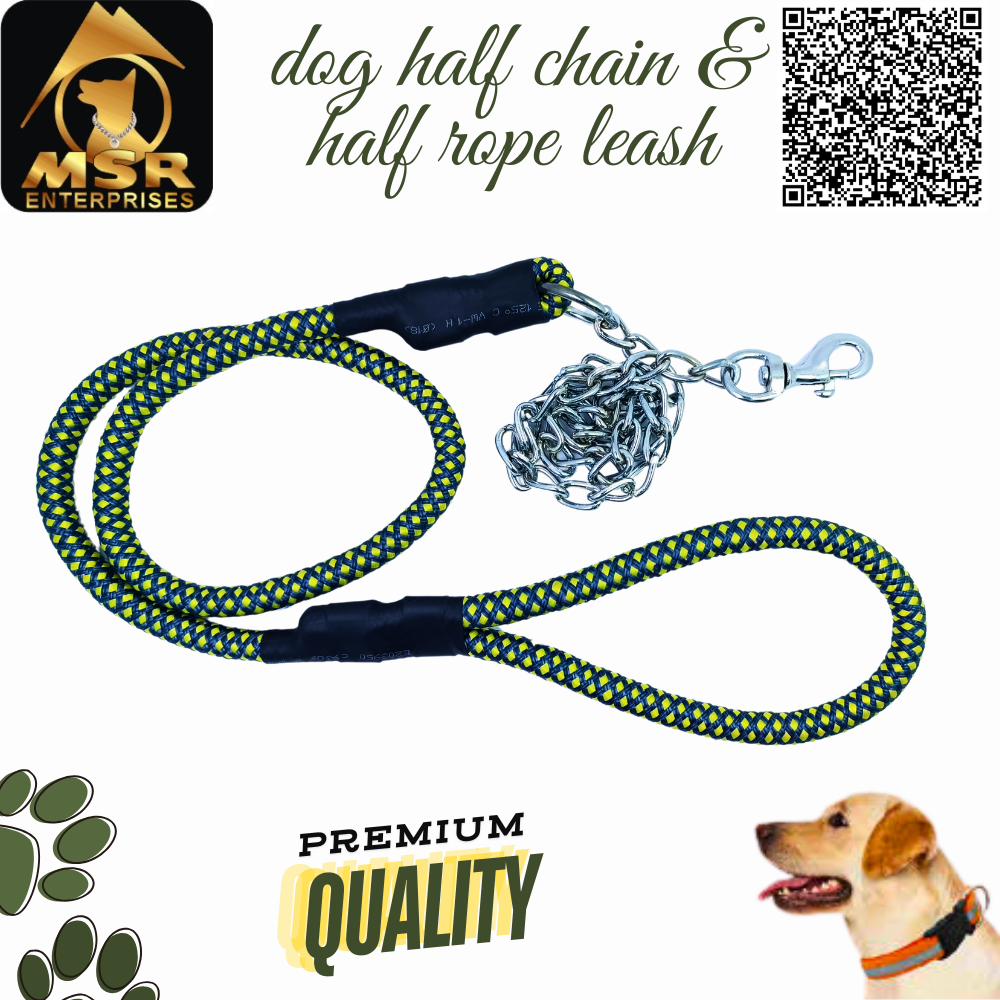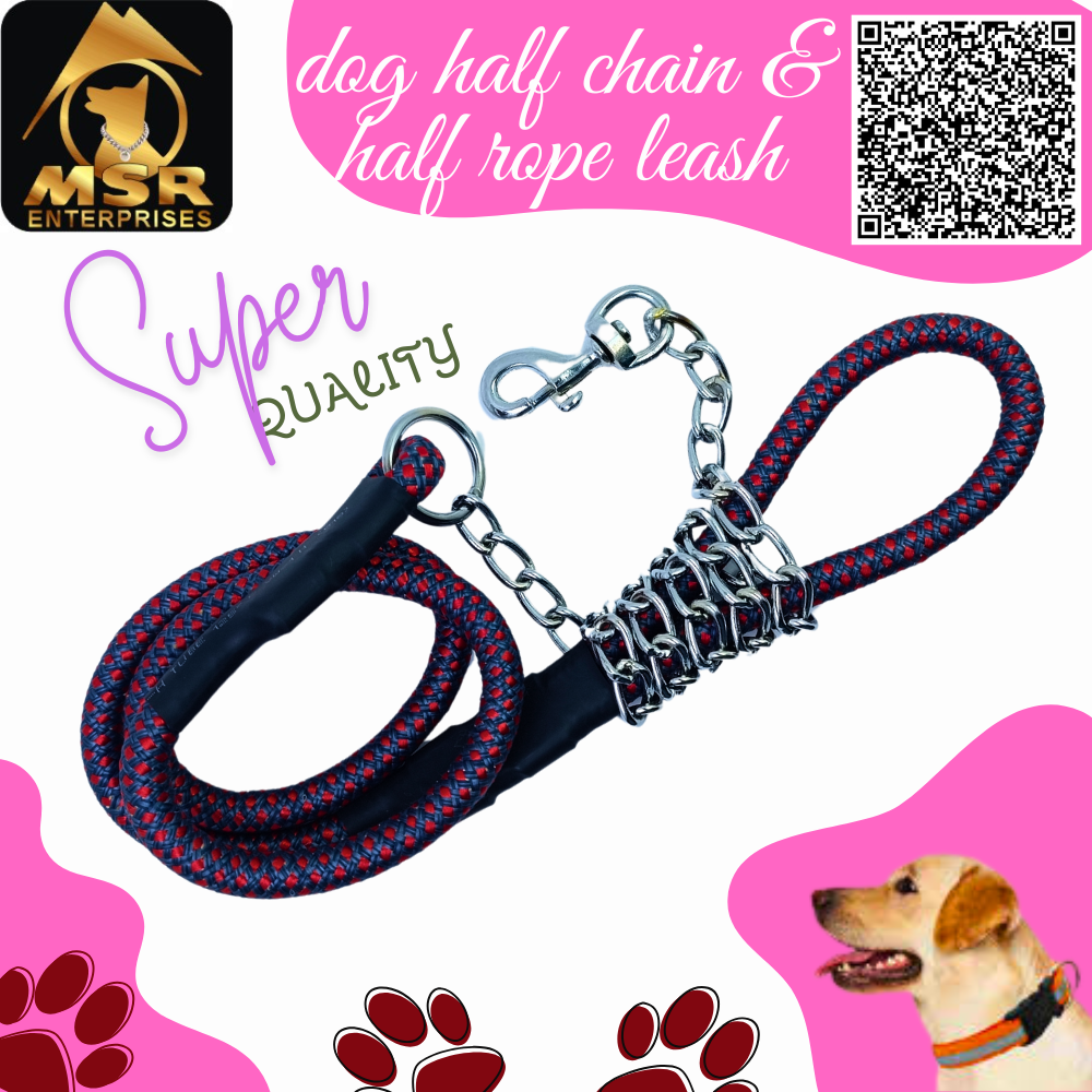 Ensure your dog’s comfort and safety with the Best Quality “ dog Half Chain + Half rope Leash” from MSR Enterprises. Designed for dogs of all sizes and breeds, this set features soft padding, multicolour, and a durable build—perfect for everyday use and total control during walks and training