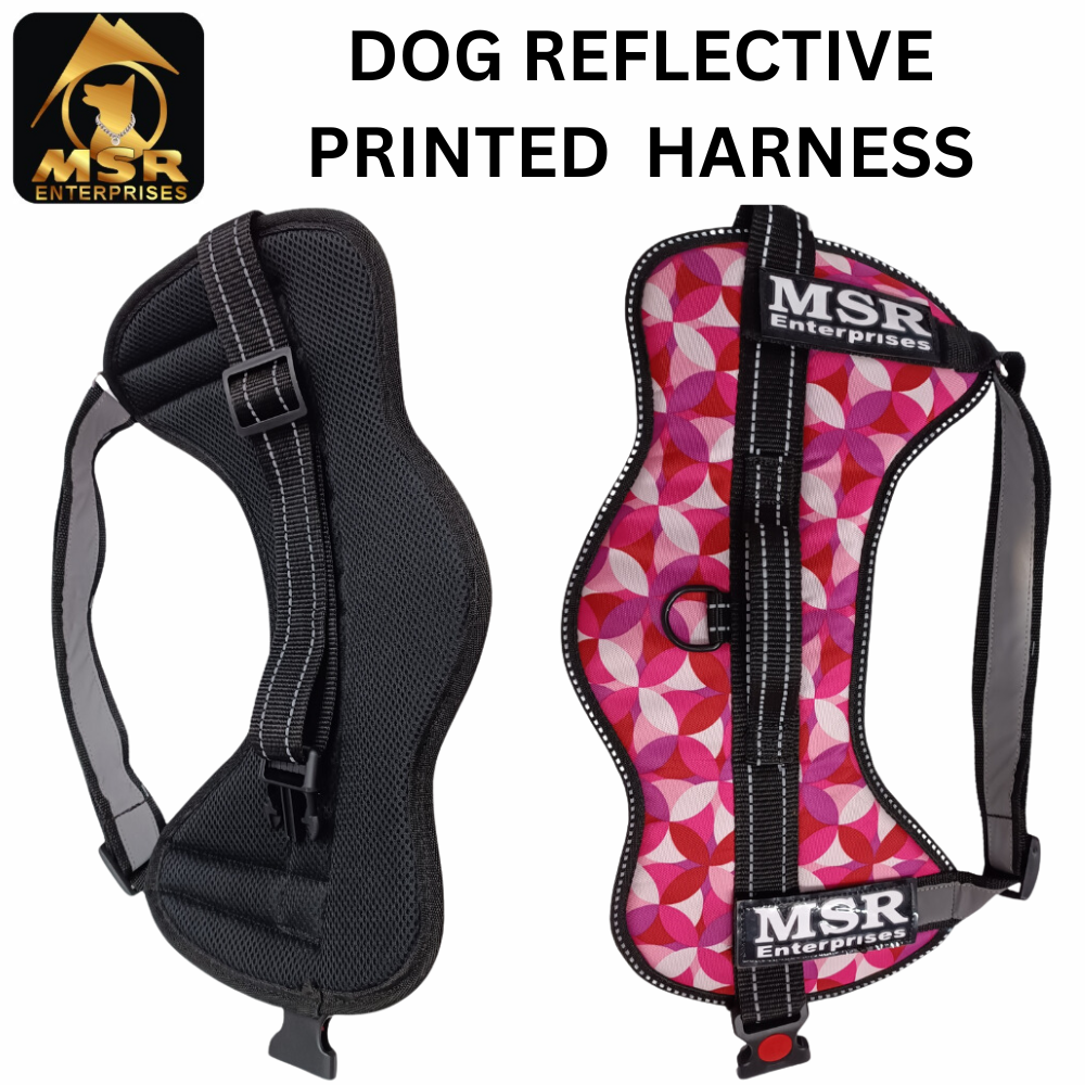 Trust SRK Enterprises for high-quality pet accessories that prioritize your pet’s comfort and your peace of mind. Our products are crafted with love and dedication, reflecting our commitment to the well-being of your pets. Enjoy a worry-free and enjoyable time with your furry friend with our All Size Dog Reflective Printed SRK K9 Harness